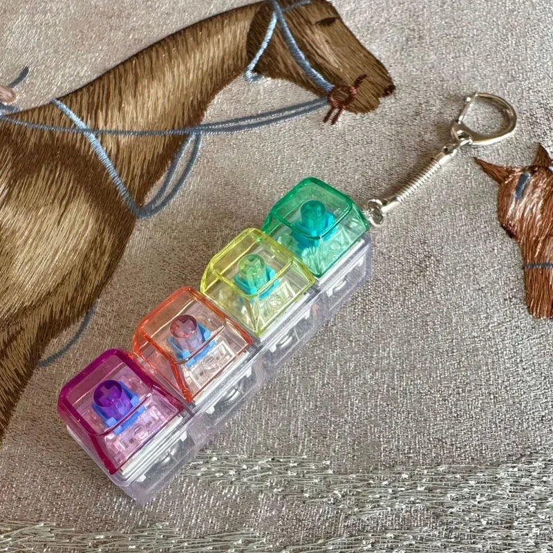 LED Keyboard Keychain Fidget Toys Crystal Clicker Sensory Toy for Stress Relief Keyboard Keychain Fidget Gadget for Adults Kids